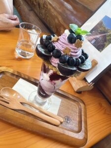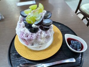 桃パフェが大人気だったお店のブルーベリーとナガノパープルのパフェとずっとずっと行きたかったかき氷屋さんの葡萄とシャインマスカットのかき氷です🥰