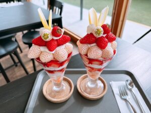天使のいちごという名前の白いいちごが乗ったパフェです😳とっても甘くておいしかったです!来年はいちご狩りもできたらいいなと思います🥺